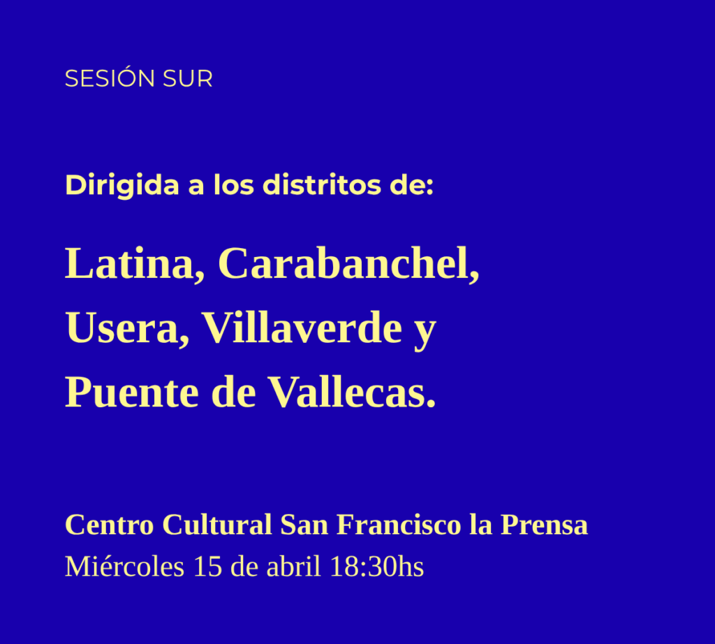 Durante el mes de abril llevaremos a cabo 4 Sesiones de Participación Ciudadana de las que tú también puedes formar parte activa. Queremos conocer tu visión de la ciudad y escuchar tus ideas para elaborar el nuevo Plan Estratégico Municipal con el que construiremos el Madrid del futuro entre todos.